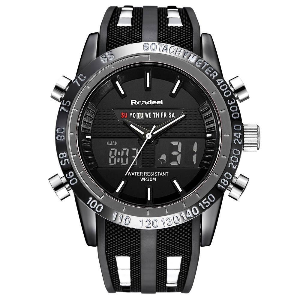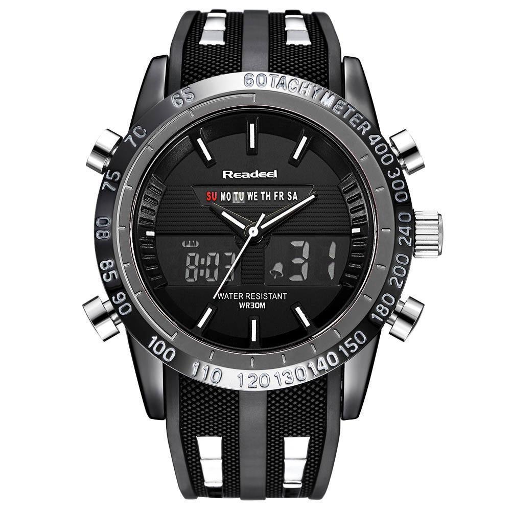 • Característica:Alarme,À Prova D'Água,Resistente a Choques,Cronômetro,Calendário Completo,Múltiplos Fusos Horários,Cronógrafo,Data Automática,Display de LED