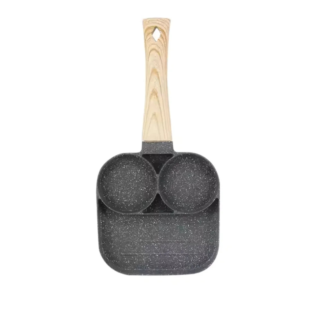 -Usage: The pan can be used to make omelets, hamburgers, etc. The pan has 3 compartments for quick cooking